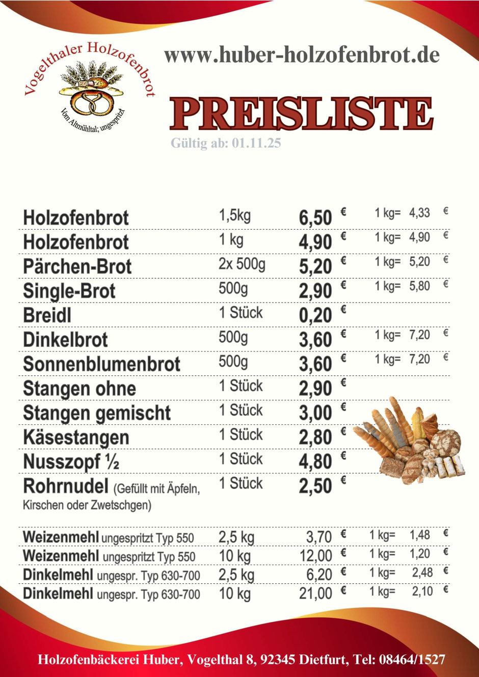 Preisliste ab 01.11.2025